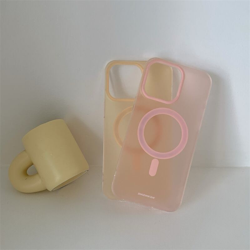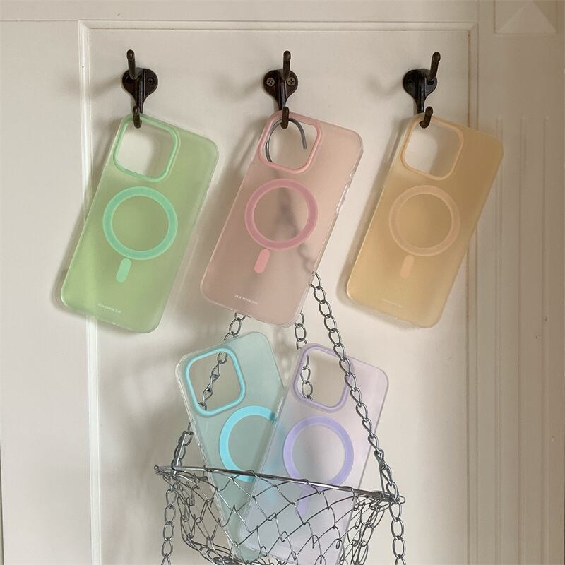 【 MagSafe対応】マカロンカラーに一目惚れ◎カラークリアケース マット シンプル iPhone15対応 ワイヤレス充電 韓国っぽ かわいい 透明 スマホケース ND-15454
