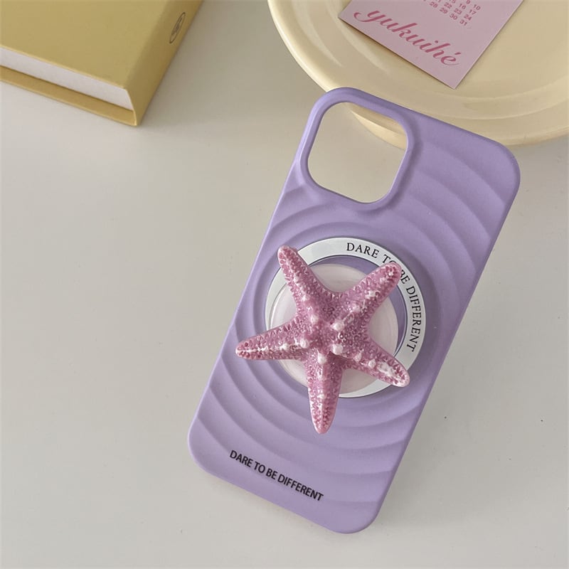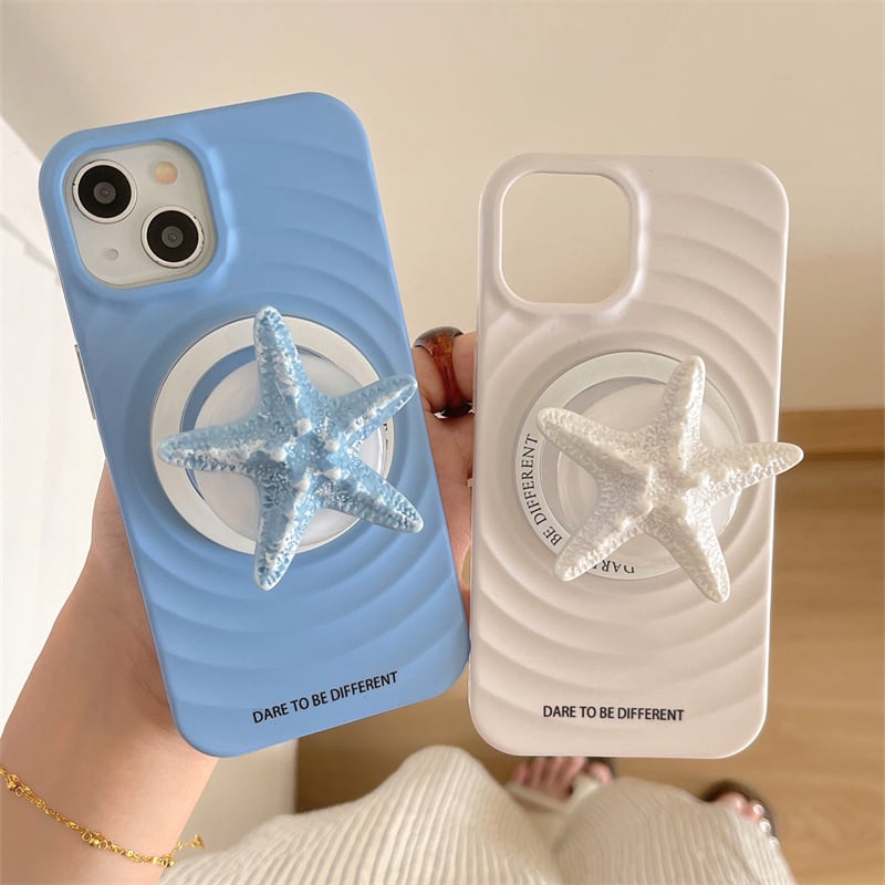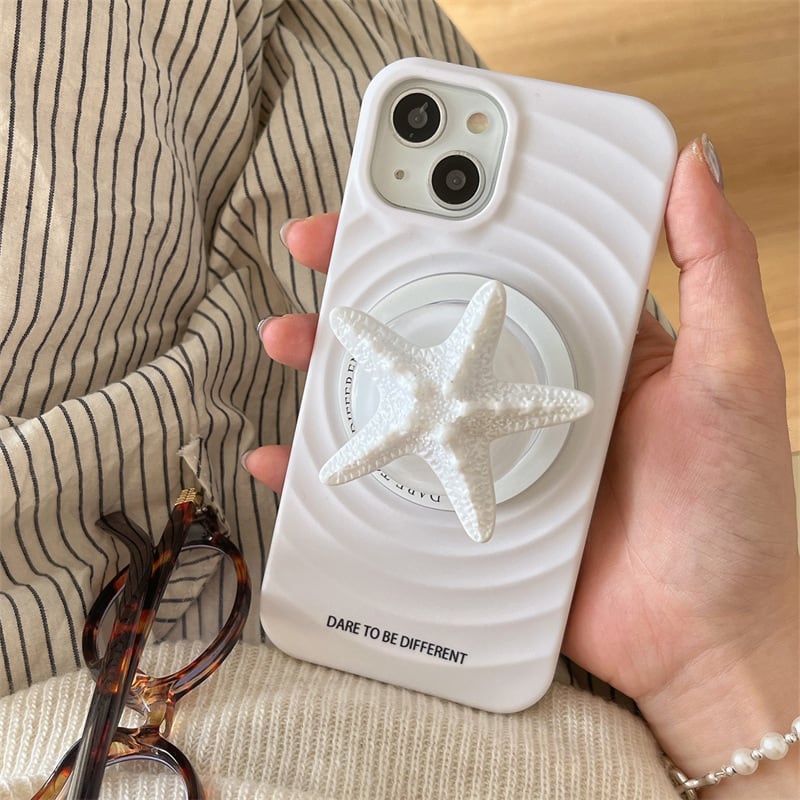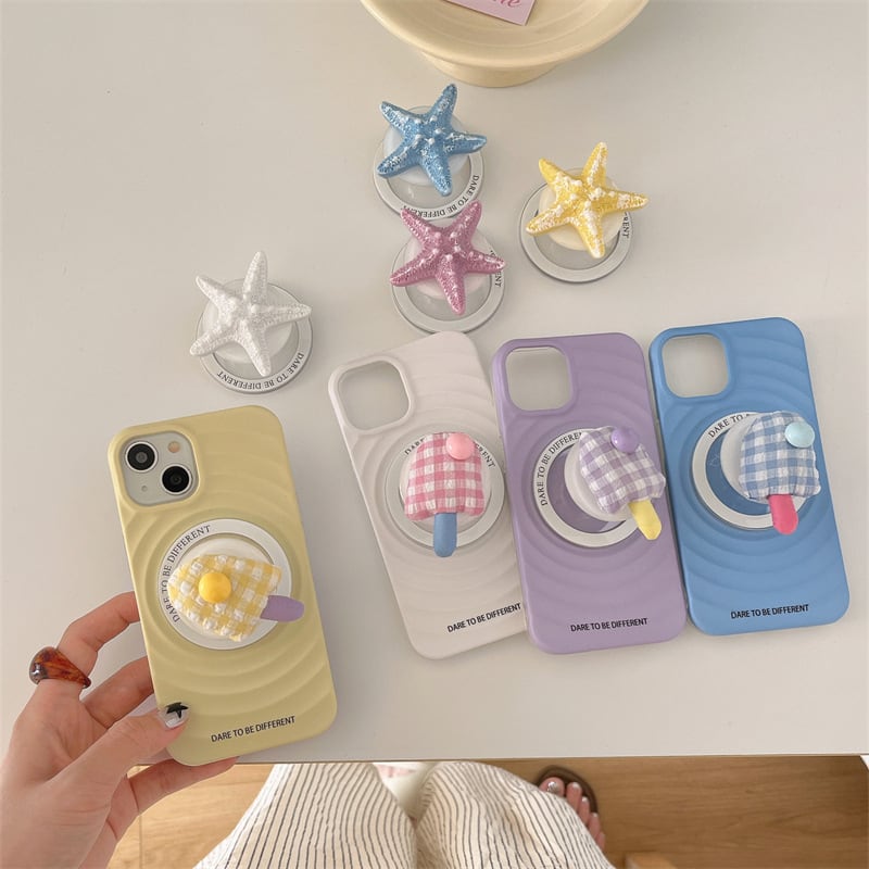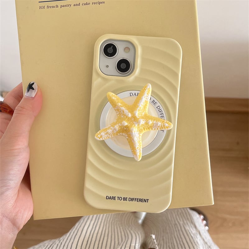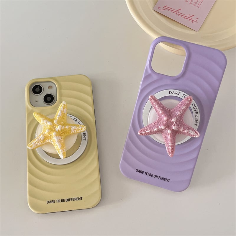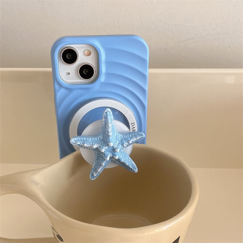 【MagSafe対応】夏の海みたい◎かわいいヒトデ 水紋 韓国ケース チェック柄 スマホグリップ ワイヤレス充電 波模様 スマホケース ND-15522