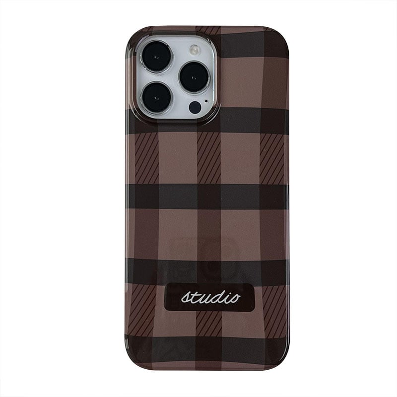 艶々してて美しい◎かわいいチェック柄 iPhone16 カメラ保護フレーム おしゃれ ダブル構造プリントデザイン スマホケース ND-15529