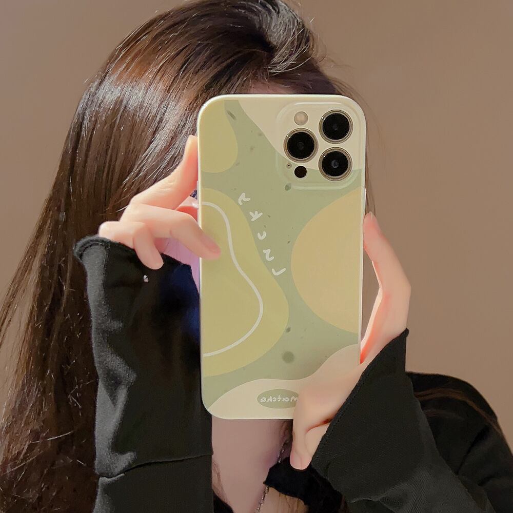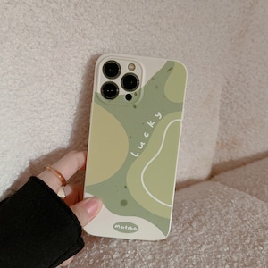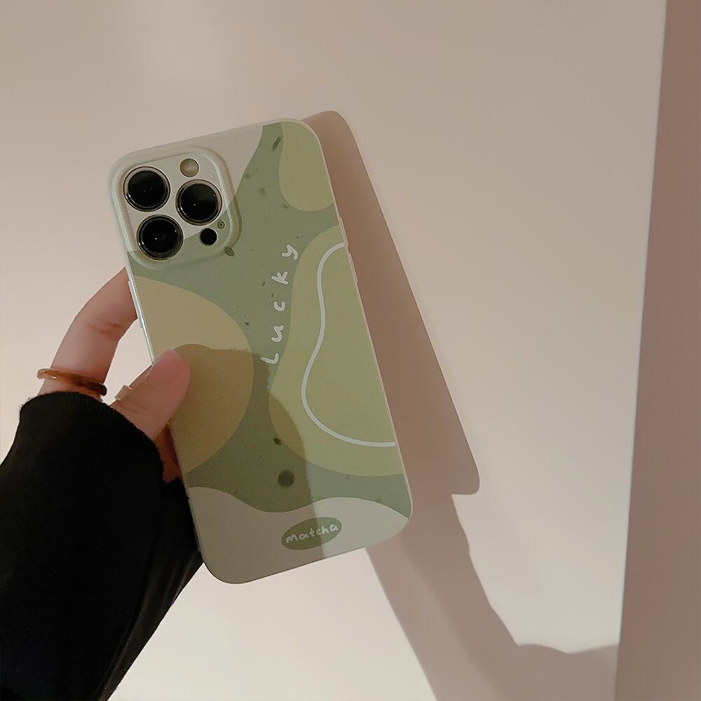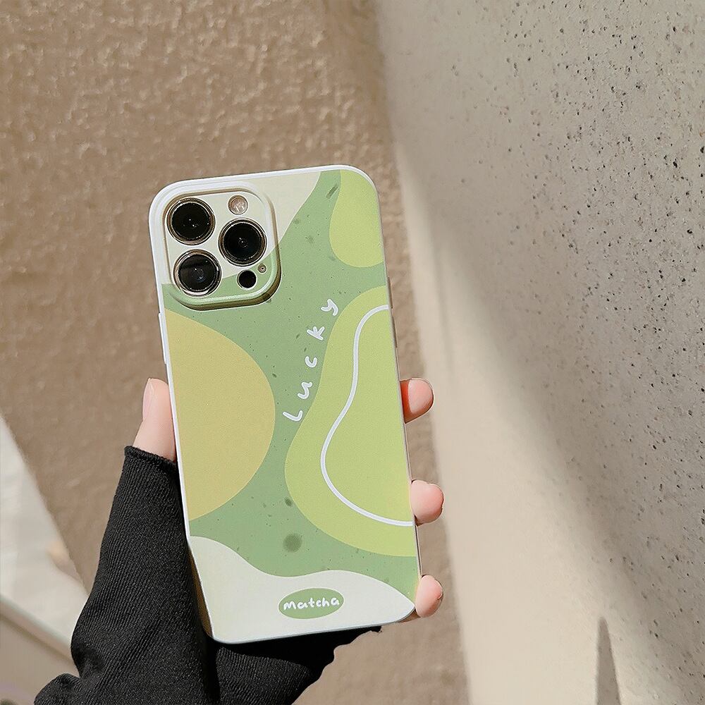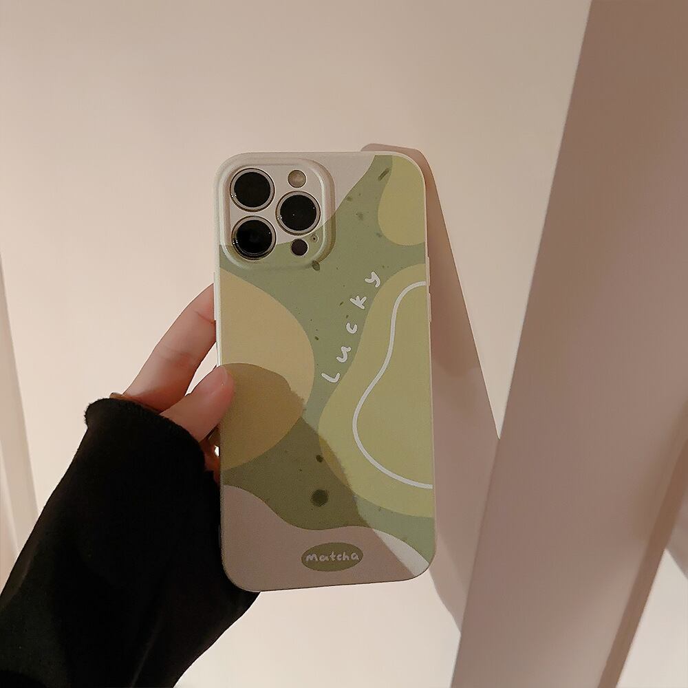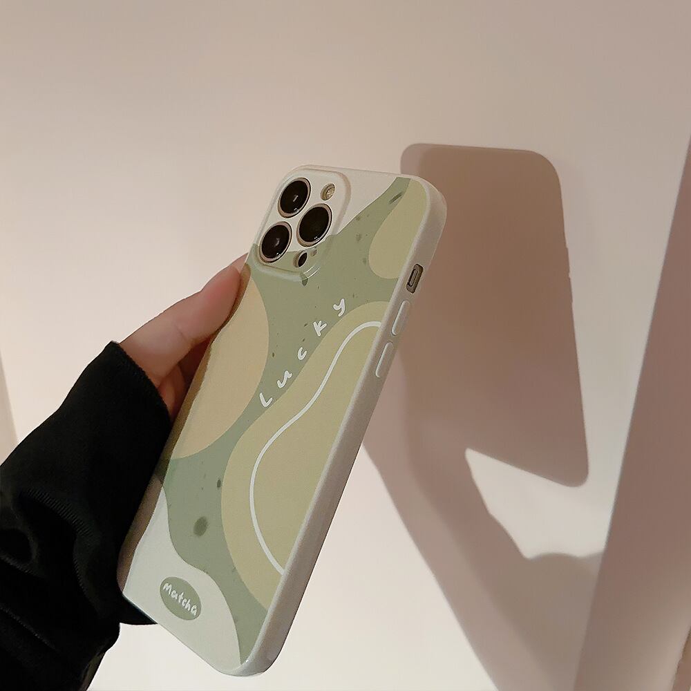 グリーンティ×ココナッツミルク◎柔らかな曲線 デザインケース iPhone15 おしゃれ カメラ保護 韓国っぽ スマホケース ND-15574