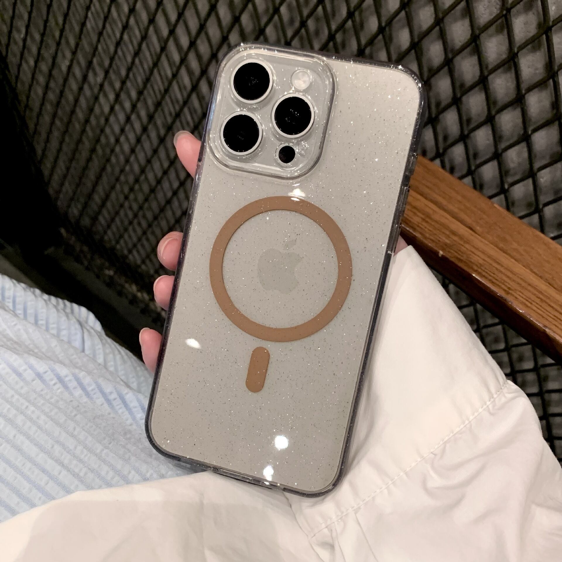 【MagSafe対応】上品なラメが可愛い◎シンプルなカラークリアケース カメラ保護フレーム 推し活グッズ ワイヤレス充電 透明 スマホケース ND-15578