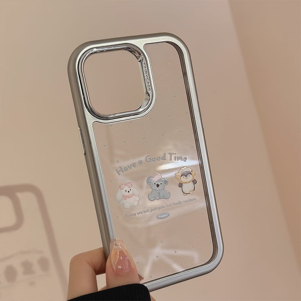 おしゃれなシルバーフレームのクリアケースです。