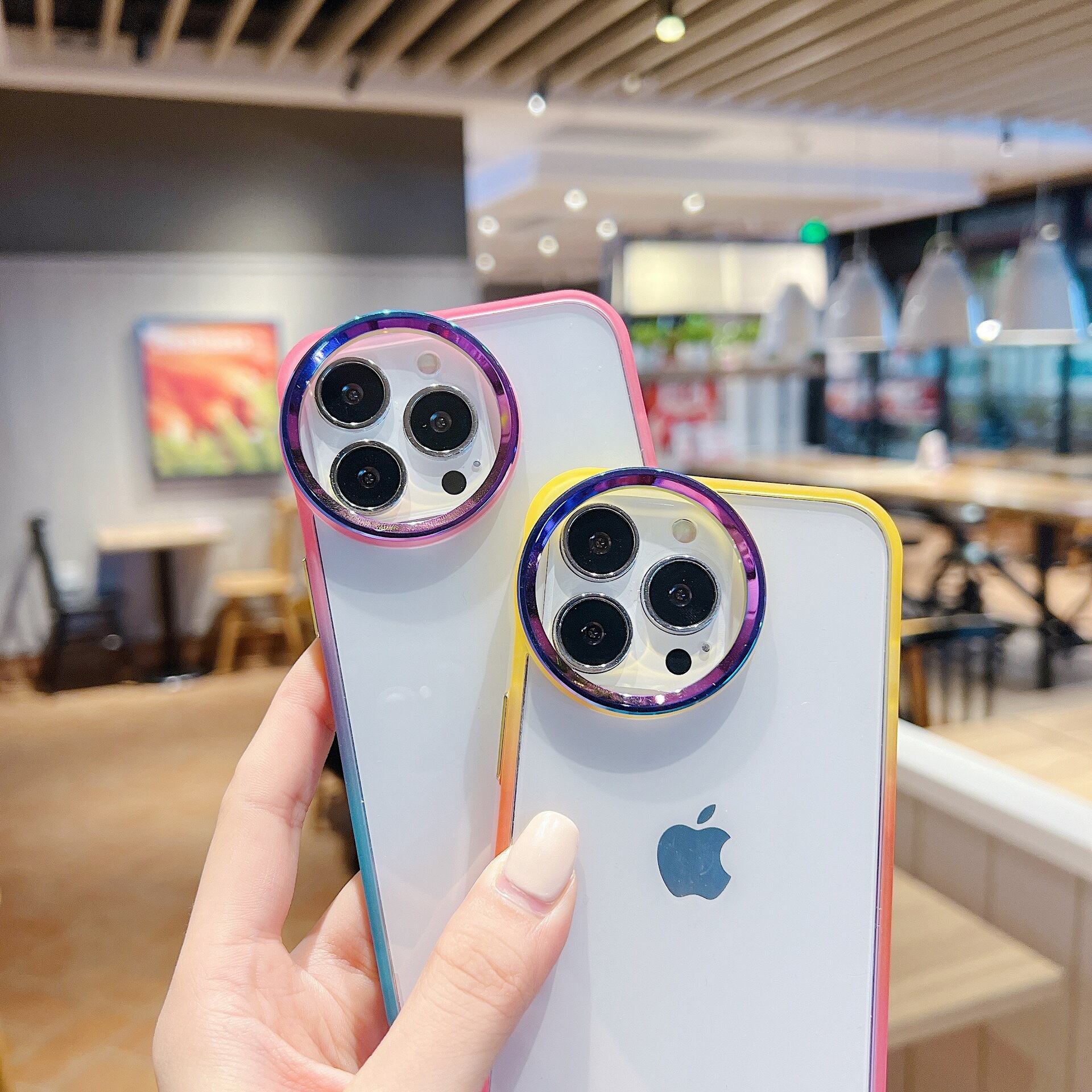 まぁるいフレーム◎お洒落なオーロラメタル クリアケース 5色から選べる 保護フレーム カラーフレーム 透明 スマホケース ND-15703