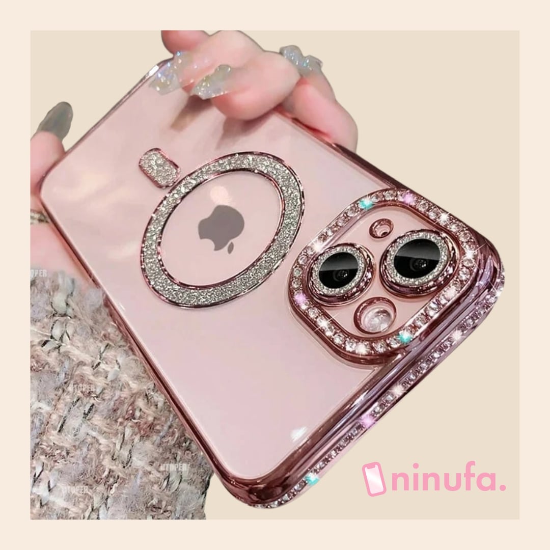 MagSafe/キラキラケース/メタルフレーム/ラインストーン/高見えケース/大人可愛い/透明ケース/耐衝撃/iPhoneケース/推し活/ギフト