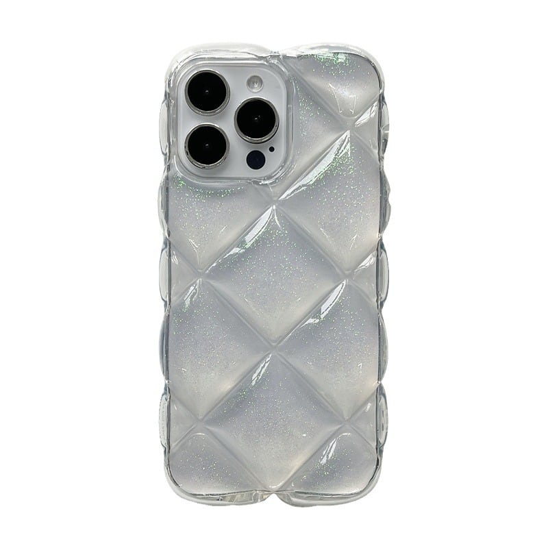 推し活ケースとして人気◎ラメ キルティング クリアケース かわいい 韓国ケース 透明 菱形パターン キラキラ スマホケース ND-15844