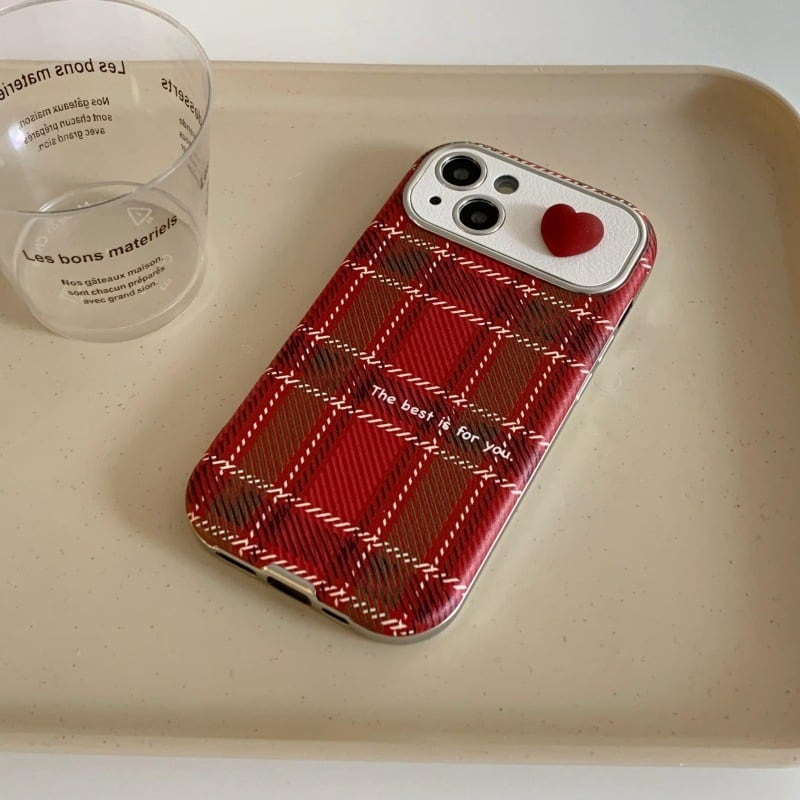 冬におすすめ赤のタータンチェックが可愛い韓国ケース。