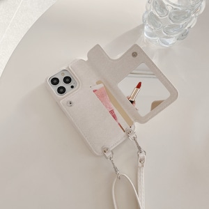 ファスナー付きのケースやカードホルダー、化粧直しも楽なミラー付きで