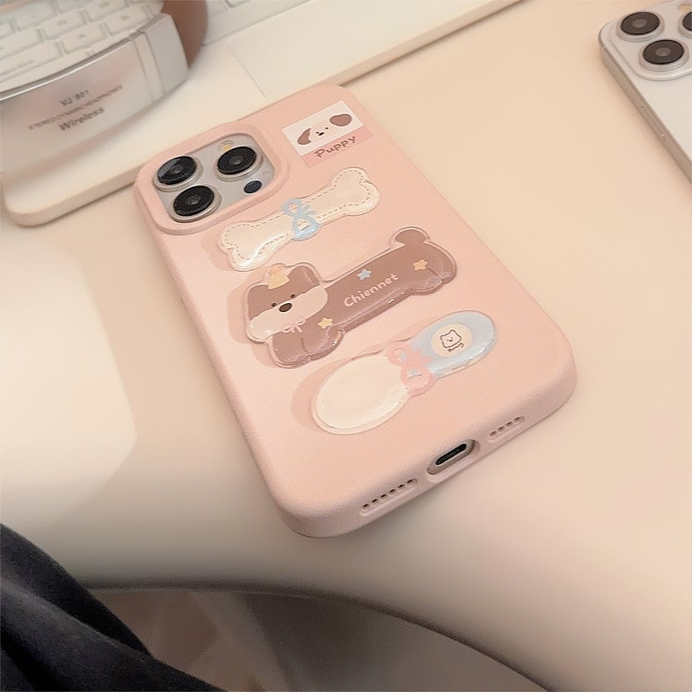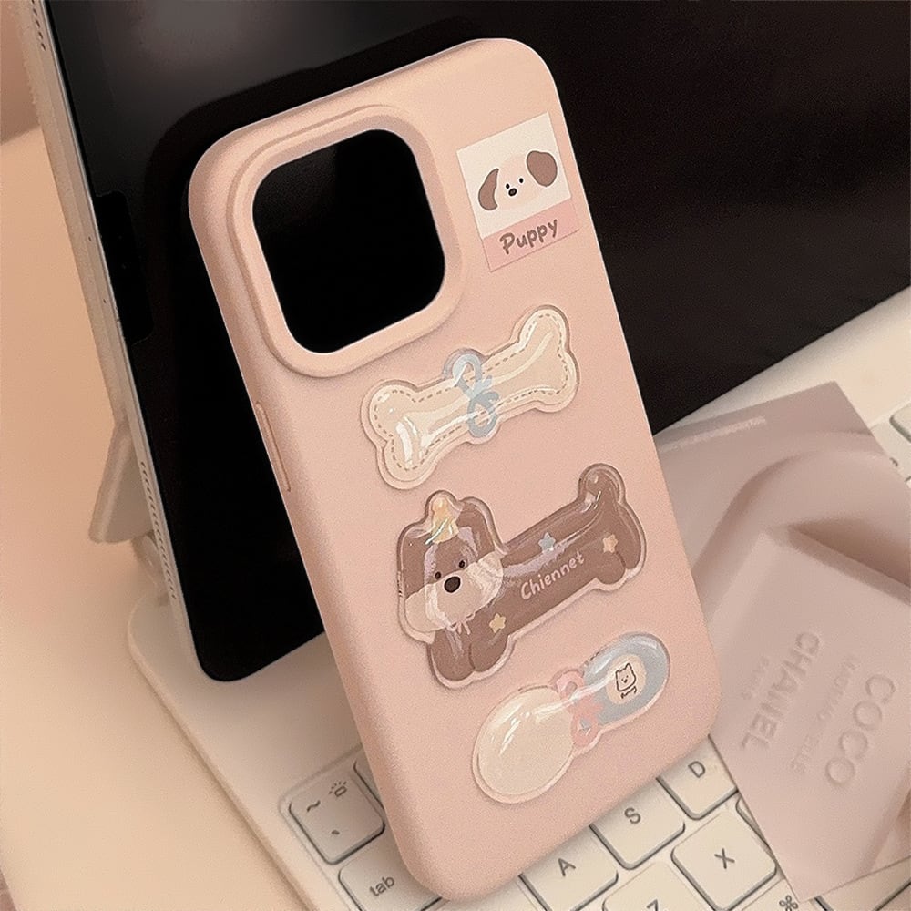 癒しのパピー◎ぷっくりステッカー 立体デコ 韓国ケース ピンク カメラ保護フレーム かわいい 子犬 スマホケース ND-15997